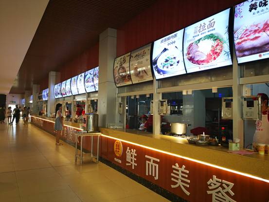 二楼风味餐厅设置了营养套餐、西式快餐、特色小吃、饮料吧、小超市等一应俱全,而且价格实惠,8-12元就能饱餐一顿。一位正在吃饭的学生说,改造后的大学食堂,让同学们不仅吃得好,还有良好的用餐环境,比外卖实惠卫生,很受欢迎。
