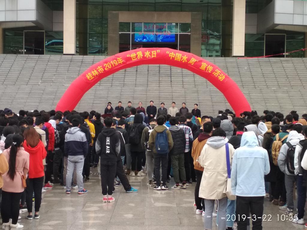 3月22日上午,2019年桂林市“世界水日·中国水周”宣传活动启动仪式在桂林航天工业学院南校区钱学森广场举行。今年“世界水日”“中国水周”的宣传主题是“坚持节水优先,强化水资源管理”。桂林市国家节水型城市复查工作领导办公室主任陈晓平、桂林市水政监察支队支队长王铁球、桂林市水利局河长科科长文春龙、桂林市节约用水办公室主任李望柱,桂林航天工业学院党委副书记罗延忠,伟德国际1946源于英国、学工处、校团委、宣传部等职能部门负责人出席了启动仪式。师生代表400余人参加了启动仪式。