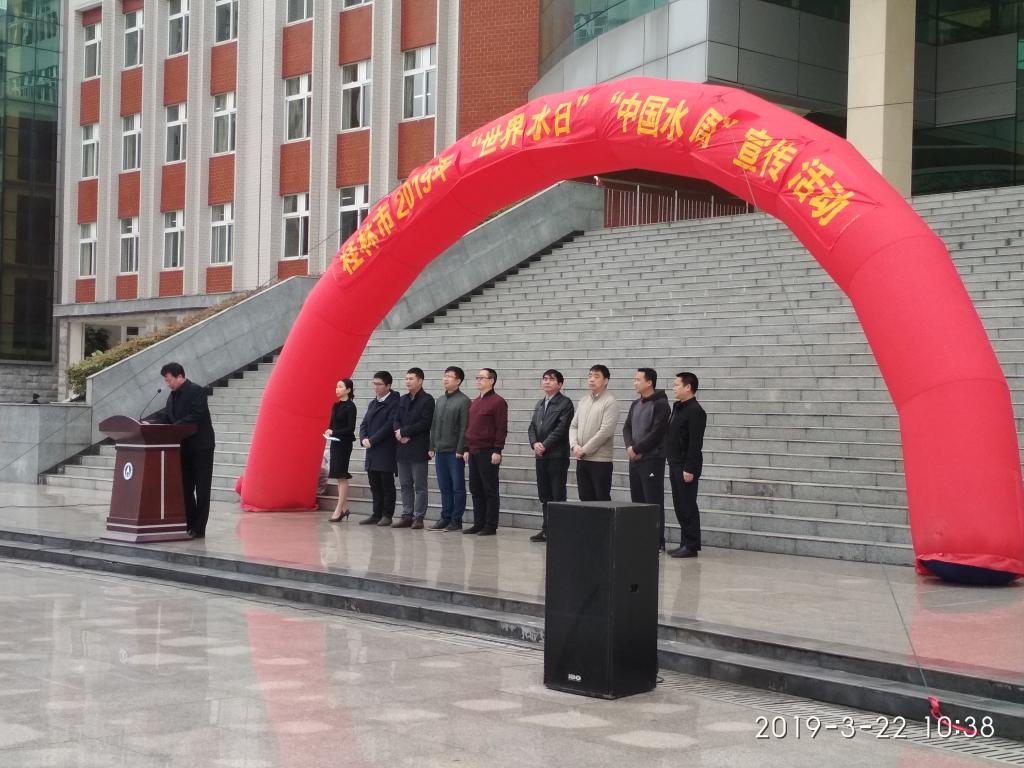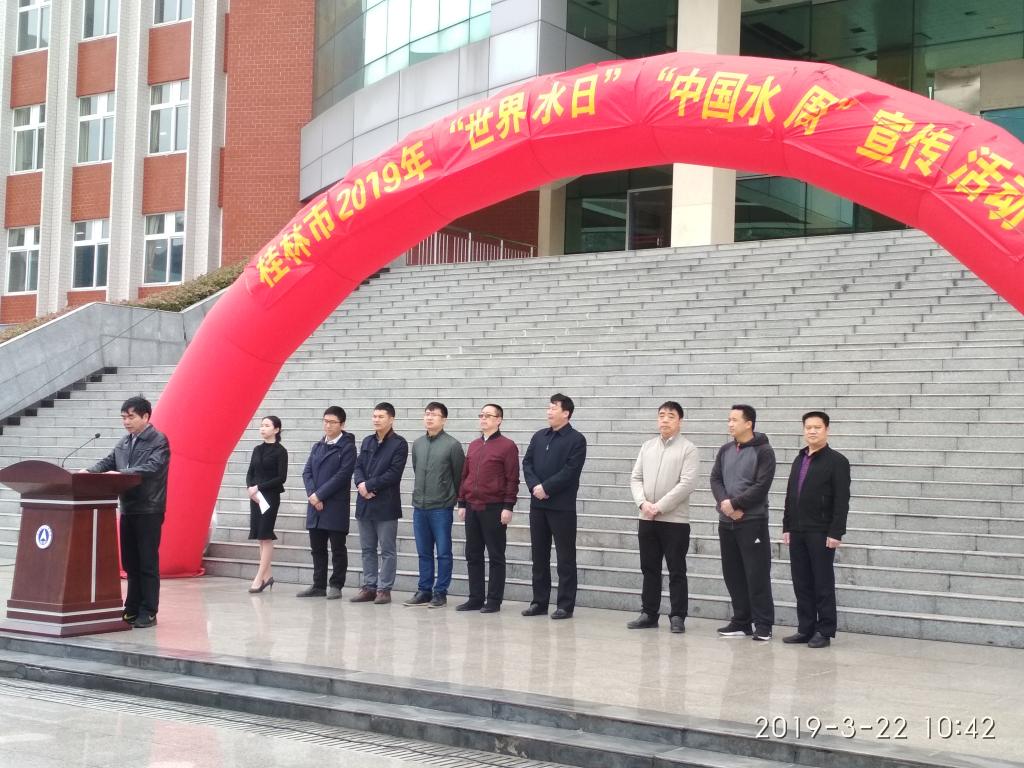 桂林市国家节水型城市复查工作领导办公室主任陈晓平做重要讲话并宣布启动仪式开始。他对中国的水情和桂林水情进行分析介绍,同时指出的水资源的宝贵性和重要性,号召广大师生爱护水源、节约水源、保护水资源。