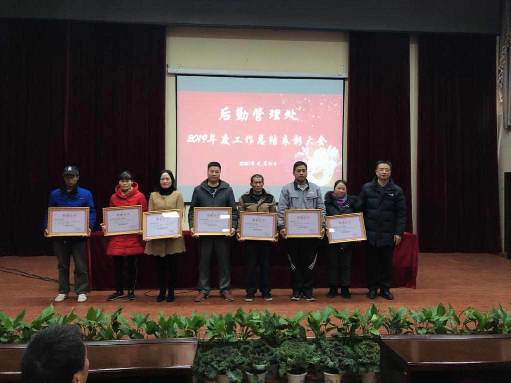 罗国湘肯定了2019年后勤工作取得的成绩,并代学校向后勤全体干部职工表示感谢,对受到表彰的集体和个人表示祝贺!他指出,过去的一年,在大家辛勤努力下,维修管理、餐饮质量、校园环境、医疗保障等各项后勤服务保障工作不断获得新突破,保障能力不断提升,为学校的发展发挥了很好的保障作用。同时又从主观和客观两方面指出了后勤工作中存在的问题。随后,罗国湘对大家提出了三点希望:一是紧紧围绕学校本科教学合格评估的核心任务做好服务保障;二是强化服务意识,树立服务第一、质量第一的观念;三是强化作风建设, 树立担当实干的精神,把后勤服务保障工作推上一个新的台阶。
