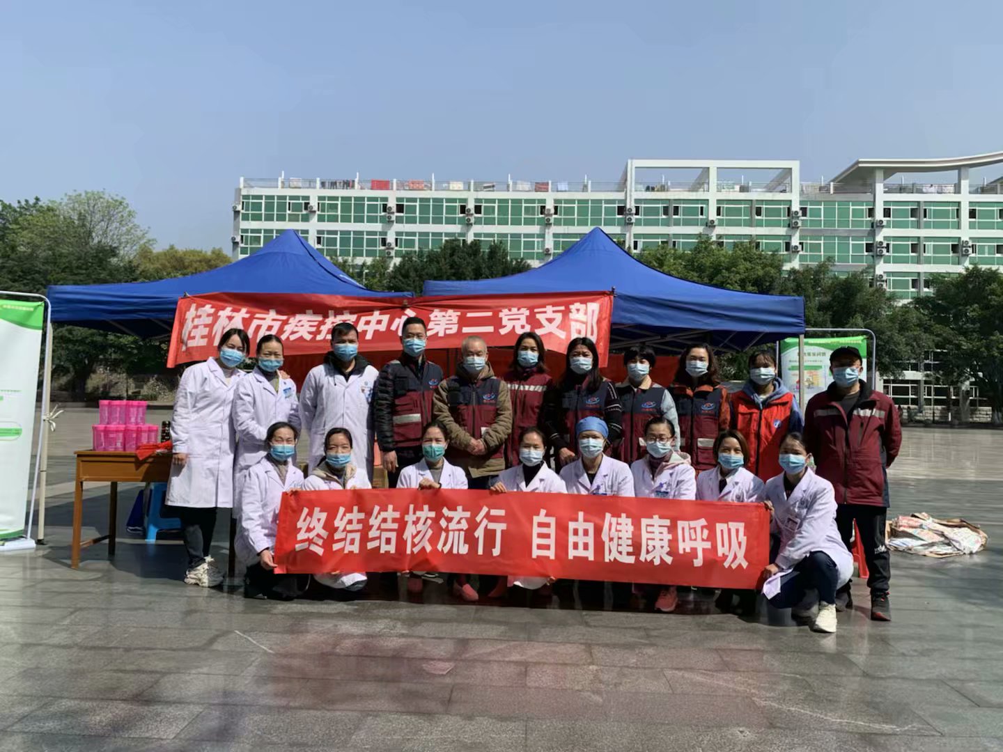 26个世界防治结核病日到来之际,我校卫生所医务人员联合桂林市疾控中心第二党支部,在青春广场开展世界结核病防治日“终结结核病流行 ,自由健康呼吸”主题宣传活动。卫生所全体党员参加此次活动。