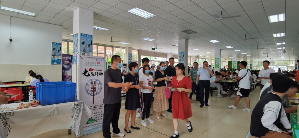 在活动中,支部党员向前来就餐的师生发放宣传册,呼吁广大师生勤俭节约,拒绝浪费,珍惜粮食;同时开展“中秋送月饼”活动,向践行“光盘行动”的师生赠送月饼,引导师生牢固树立厉行节俭意识,积极参与光盘行动,自觉把勤俭节约的理念内化于心、外化于行,争做节约行动的传播者、践行者和示范者。