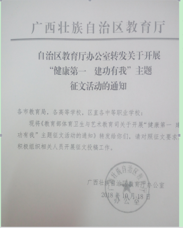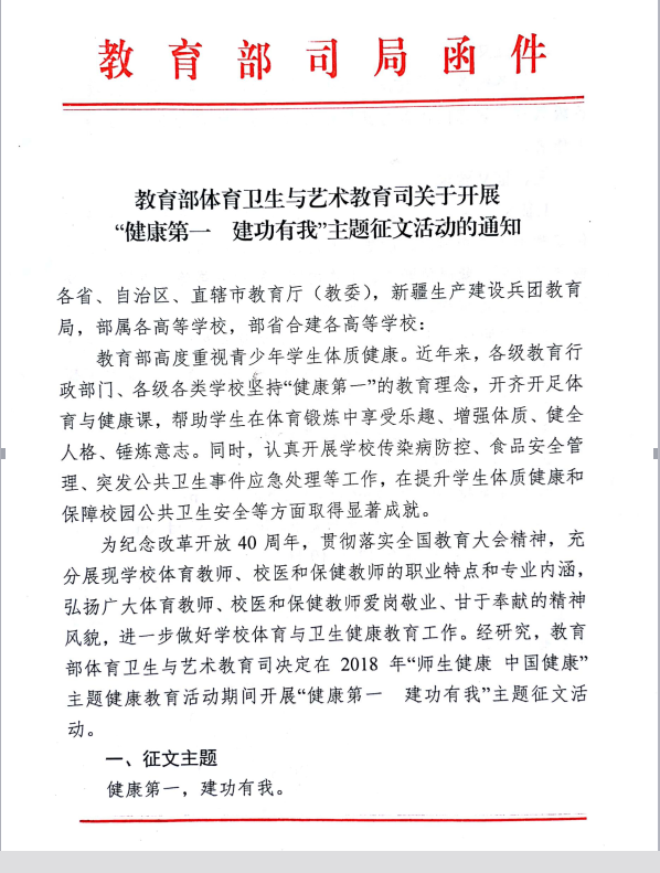 转发自治区教育厅开展“健康第一,建功有我”主题征文活动