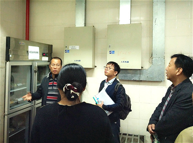 专家组一行在我校有关部门负责人的陪同下,实地查看了校园超市、学生食堂、学生宿舍、卫生所等场所,重点就超市食品经营、食堂食品储存及加工区卫生、餐具消毒、学生宿舍内务卫生、校园环境卫生情况、校卫生所运作情况及健康教育等方面进行检查。实地考察后,专家组在飞天楼517会议室查阅了我校自治区“卫生优秀学校”复评工作支撑材料。