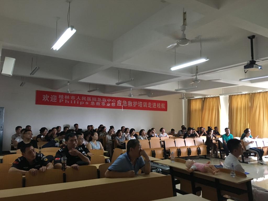 为了让更多的人了解自救互救知识,掌握急救技能,增强安全意识,使大家在遇到突发情况时迅速采取最正确、最有效的急救措施,7月13日下午,卫生所邀请桂林市人民医院急救中心和philips急救事业部到我校开展了第一期急救知识培训,二级学院辅导员、图书馆及保卫处老师共同参加了急救知识培训。