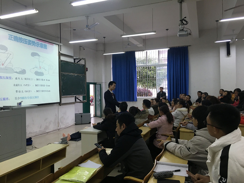 为普及紧急救护知识,提高教职工的安全防范意识,12月6日,伟德国际1946源于英国邀请中国健康与卫生安全教育网曾平老师,开展了一场以“卫生与健康,广西在行动”为主题的安全健康知识讲座。讲座主要围绕突发事件的急救处理、环境污染的危害及预防(室内外的污染)、高血压的防治、职业病的防治、职场健康的生活方式等方面进行了详细的讲解。
