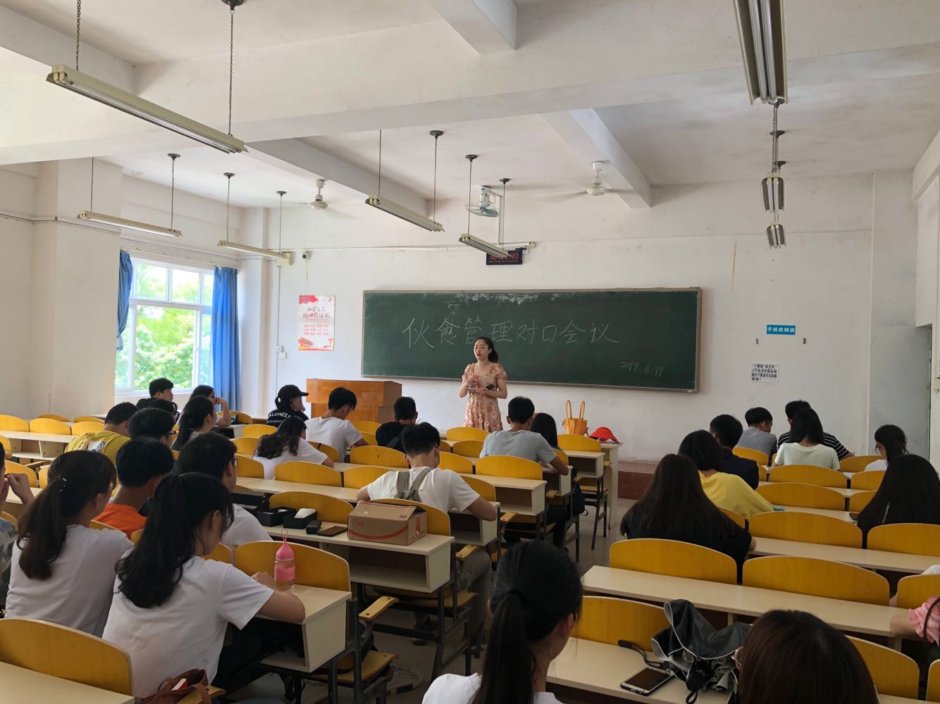 6月20日中午,2019年度上半年学生伙食管理委员会对口会议在北校区明志楼212室召开,饮食服务科管理人员、校学生会权益部学生干部、部分学生代表参加了会议。