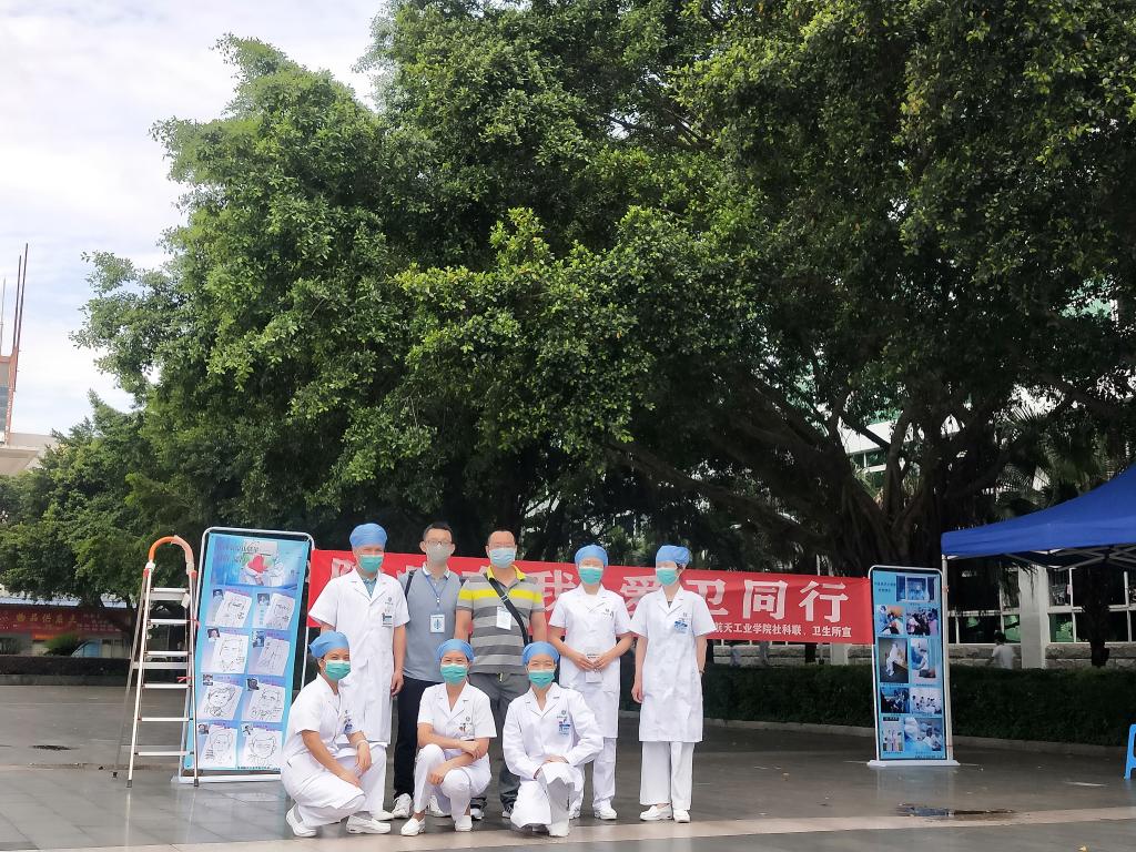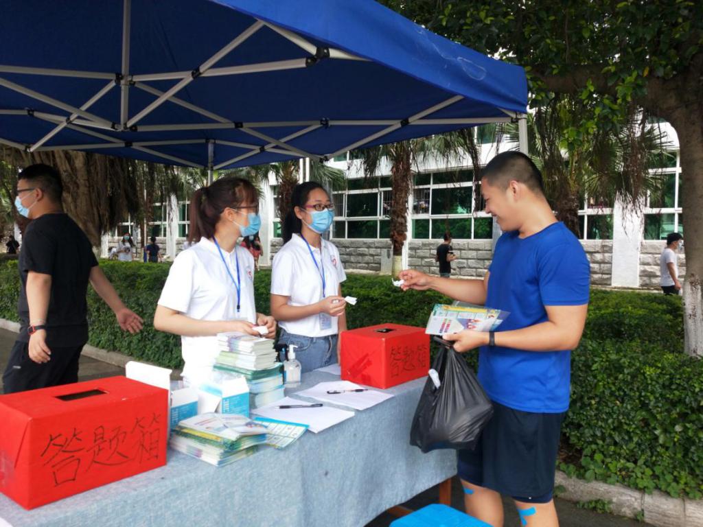 活动中,卫生医护人员给同学们普及常态化防控的意识和要求,强调目前仍处于在疫情防控阶段,个人防护不可松懈,如出现发热、乏力、干咳等疑似症状应及时就医,如实告知自身症状及旅居史有利于疾病排查;引导同学们养成“一米线”、勤洗手、戴口罩、用公筷等卫生习惯和健康生活方式;提醒同学们要合理安排好学习、锻炼与休息时间,劳逸结合,避免过长时间学习,开展体育运动要循序渐进。在活动现场,医护人员还为学生演示“七步洗手法”及正确佩戴口罩方法。在新冠肺炎防治知识和爱国卫生知识答题环节,同学们的参与热情很高,共有500多名同学参与了现场答题,并拿到了奖品——口罩。