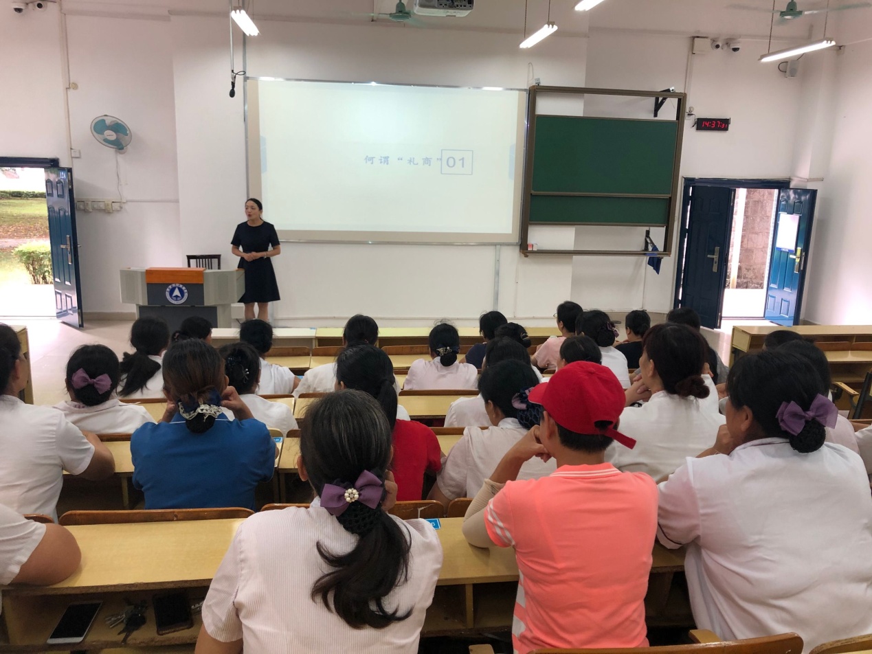 为进一步提升学校餐饮服务人员的专业素养和服务技能,树立良好的对外形象,9月10日下午,饮食服务科邀请了我校航空旅游学院张艳梅副教授在飞天楼1124教室为全体员工开展了礼仪培训。
