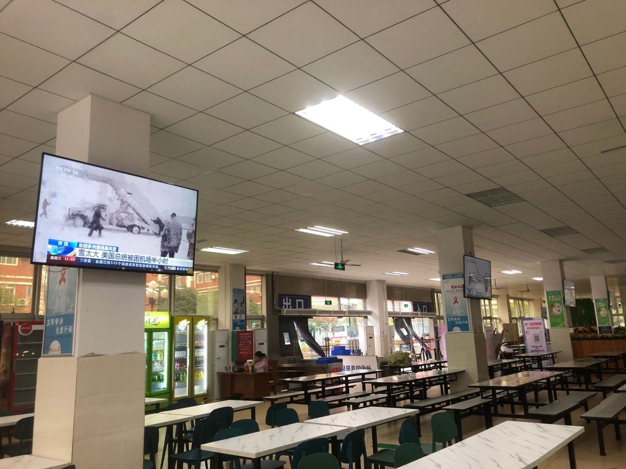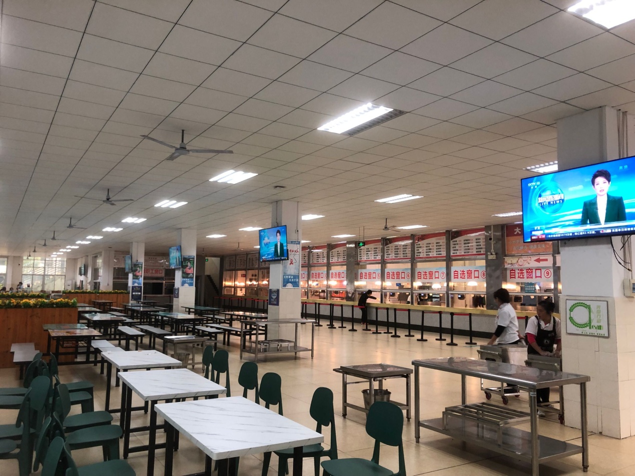 为了进一步提升学校饮食服务质量,改善学校食堂就餐环境。近期,饮食服务科为南、北校区学生食堂各配备10台网络电视并以投入使用。
