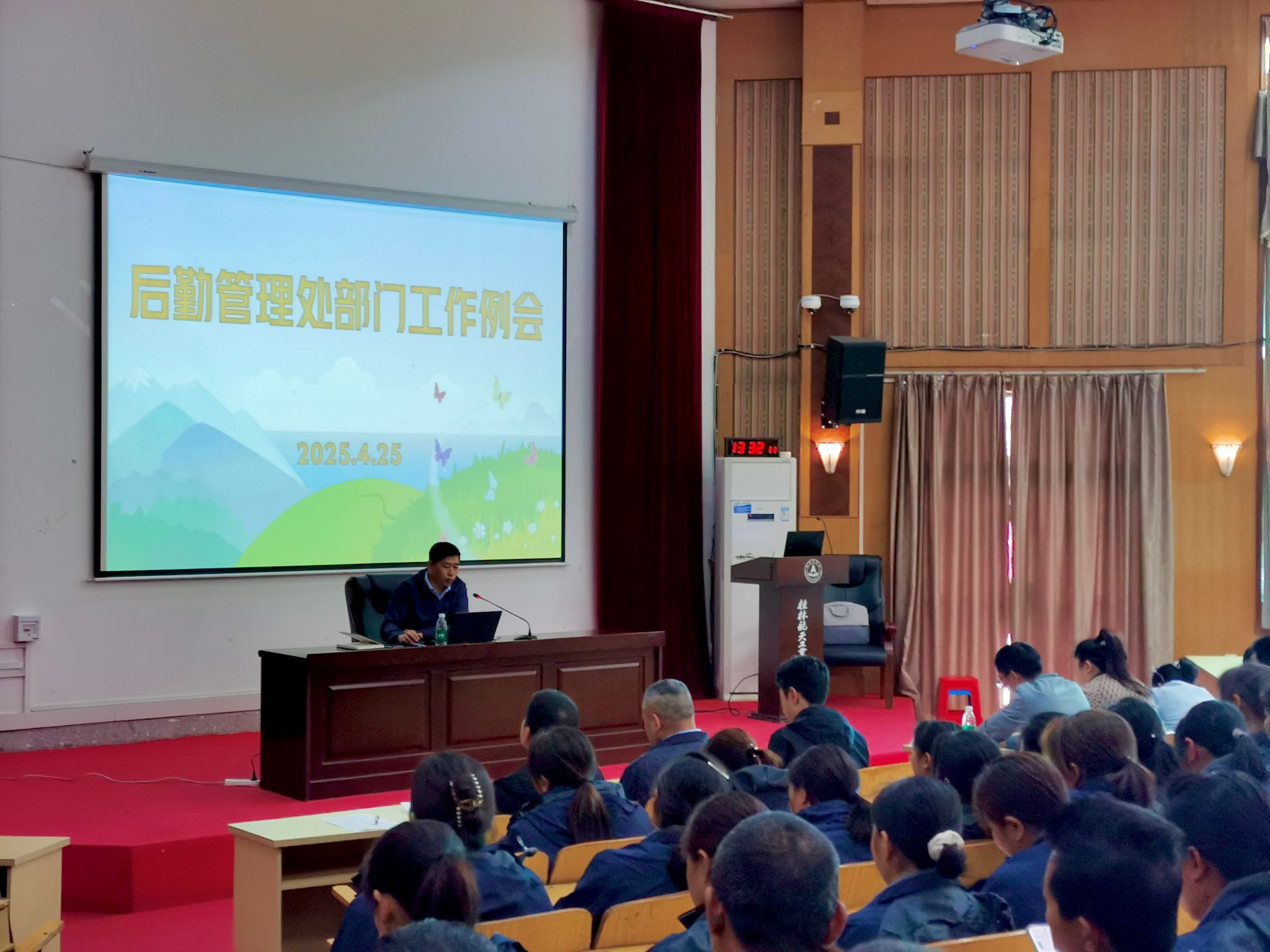 会上,处长梁国富首先对春季学期开学以来的后勤各块工作情况进行了总结和剖析,在肯定各科室工作成绩的基础上,他重点强调了部门的工作纪律、意识形态和安全稳定工作,要求全体职工服从工作安排,不断筑牢安全稳定的思想防线,强化水电保障、餐饮制作、医疗开展、保洁物业等业务的安全生产规范和管理,提高防范电信诈骗的观念意识,坚决把好食品安全质量关,严禁上班时间旷工、酗酒,一经发现按学校制度顶格处理,同事间要相互监督、相互提醒,各科室要严抓严管。