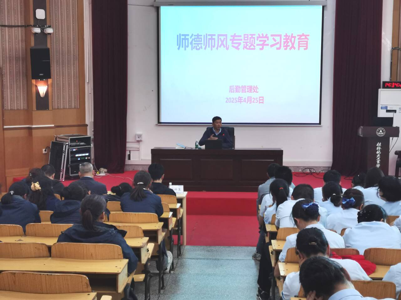 最后,大会组织开展了职工季度理论学习和师德师风专题教育学习内容,并要求全体职工继续加强理论学习,用理论武装头脑,不断提升个人职业素养和能力水平,严格遵守国家师德师风纪律和学校具体要求,加强师德修养,端正作风,坚持校内校外、家里家外的言行统一,切实把师德涵养融入到个人日常工作和生活之中。