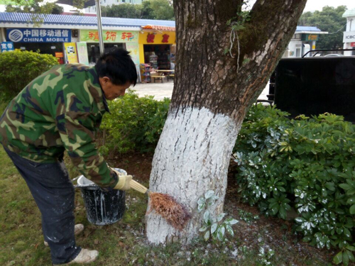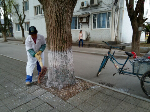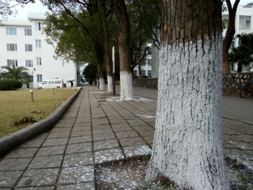 进入冬季后气温逐渐下降,各类植物生长基本停滞,为确保冬季树木顺利过冬,连日来,物业管理与服务科绿化组员工趁着几日来的好天气,加紧对校园树木进行刷白。