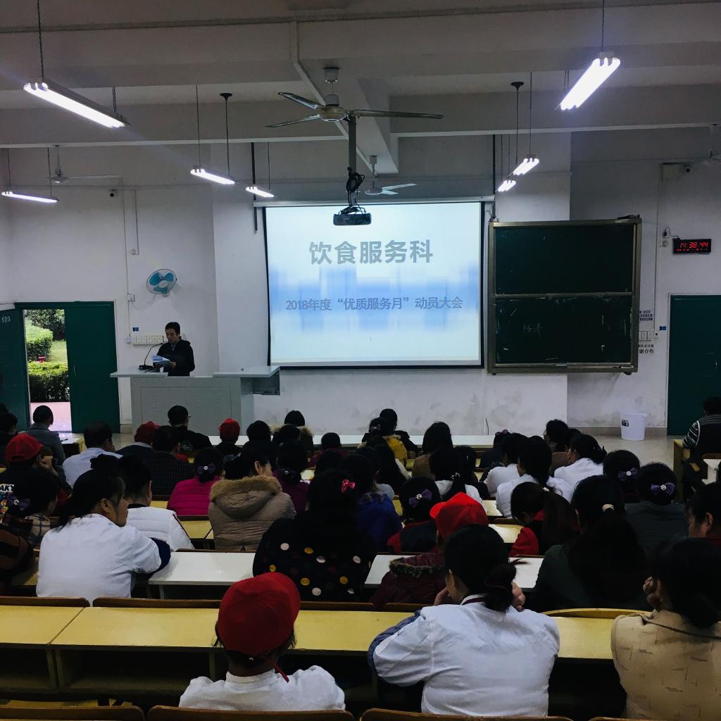 11月9日,饮食服务科在北校区明志楼1123召开了2018年后勤“优质服务月”宣讲动员会,南北校区食堂全体人员以及鲜而美全体员工参加了本次动员会。