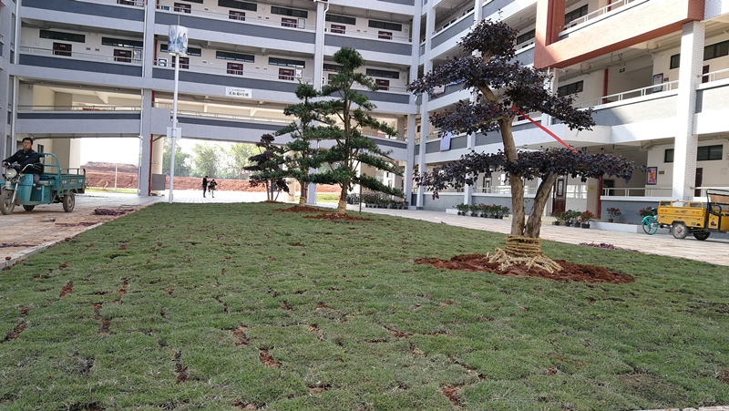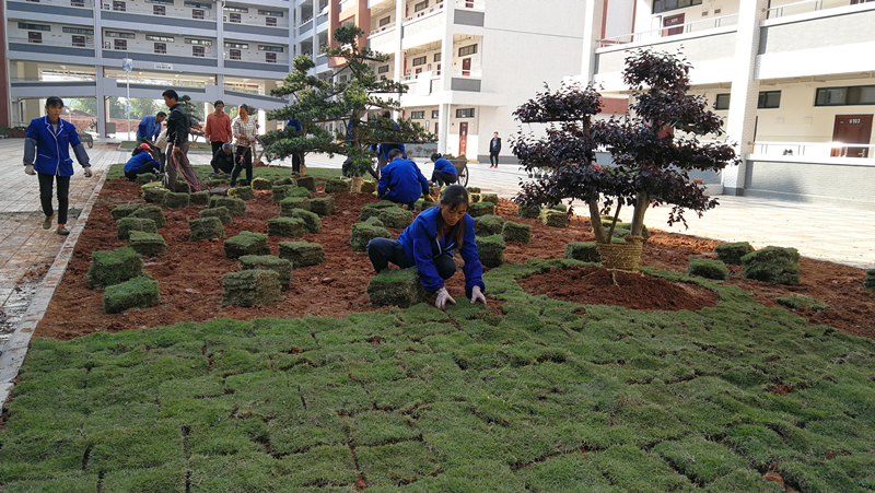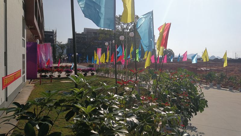 为迎接2018桂林市高校艾滋病防控宣传教育示范点汇报会暨成果展,营造优美舒适的校园环境,根据学校统一部署,物业管理科早谋划、早安排,制定专项工作方案,自11月中旬以来,组织专门力量在天和苑8号公寓楼花坛共填土约300立方,并在公寓楼内外种植11棵具有观赏性的造型罗汉松、红继木,种植三角梅276棵,铺草皮约450平米,摆放绿植350盆,安插彩旗200面。