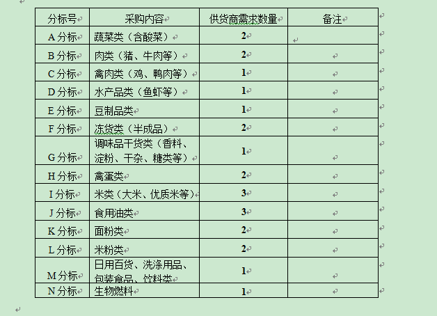 四、合同期限:1年磋商供应商根据自身生产经营能力自主选择其中一个分标(每个磋商供应商最多只能选择两个分标)的进行磋商。每一个分标只能有一个报价,如磋商供应商参加两个分标磋商,需按磋商分标数缴纳磋商保证金。详见竞争性磋商文件。