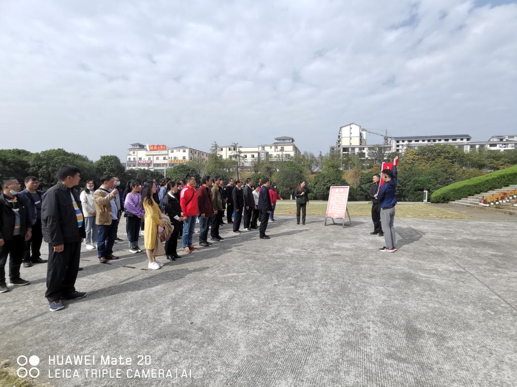 在红军长征突破湘江烈士纪念碑园,全体党员列队向湘江战役革命烈士敬献花篮缅怀先烈,在党旗前举行集体重温入党誓词仪式,表达对党的忠诚。